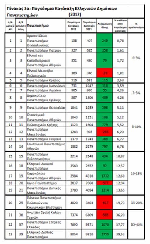 σύμφωνα με τα αποτελέσματα, η πλειονότητα των ελληνικών πανεπιστημίων βρίσκεται